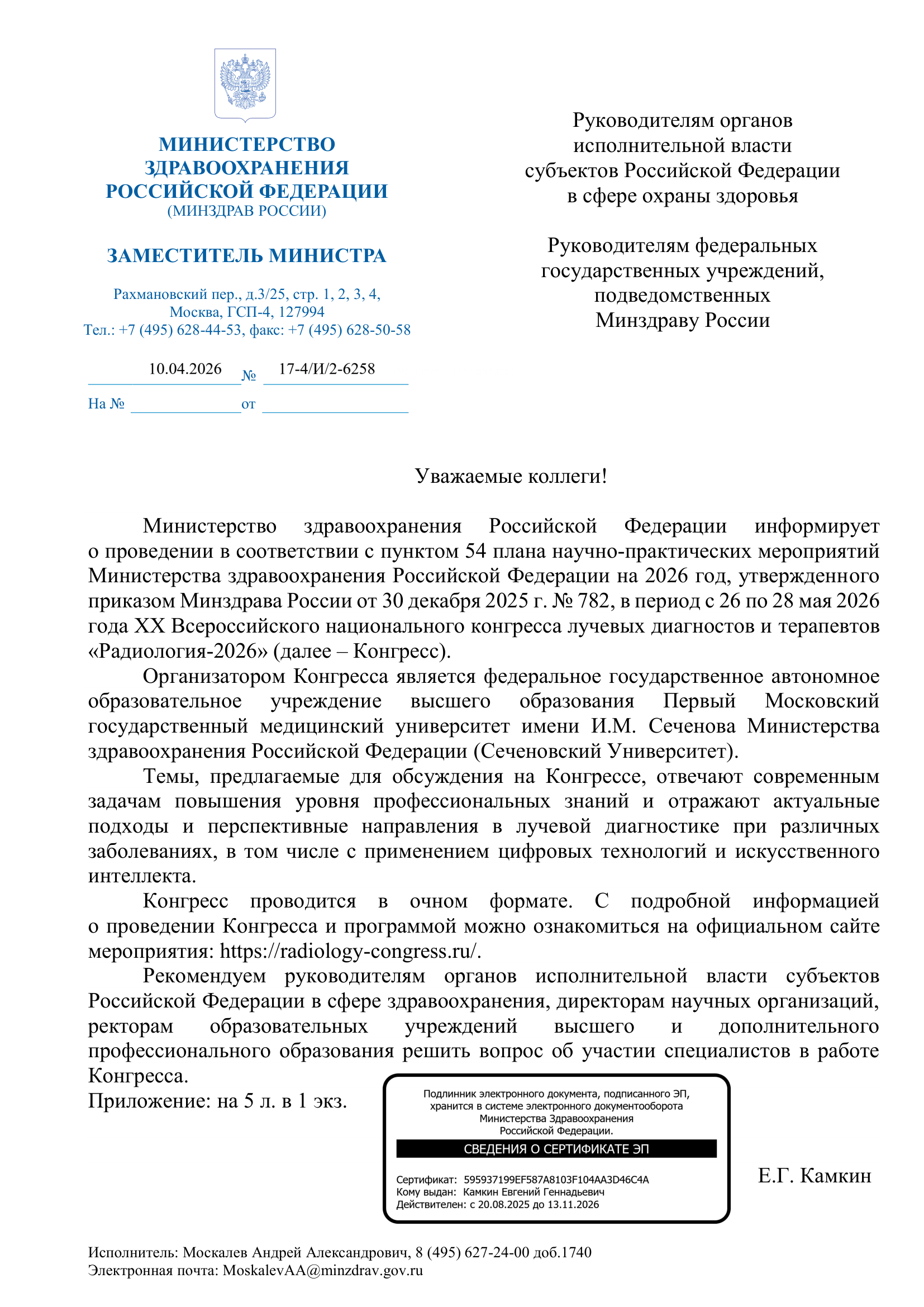 Торжественная встреча, посвященная юбилею конгресса «Радиология – 2026»